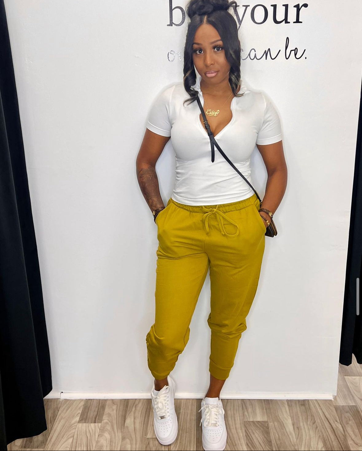 Loose fit basic jogger, model is 5'4", 140lbs wearing a small.