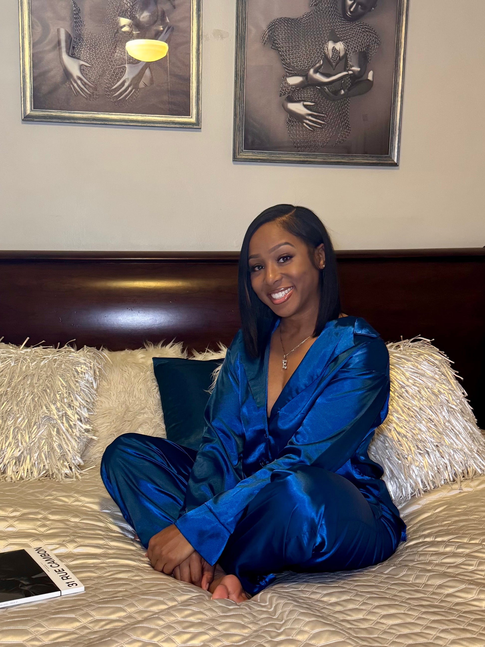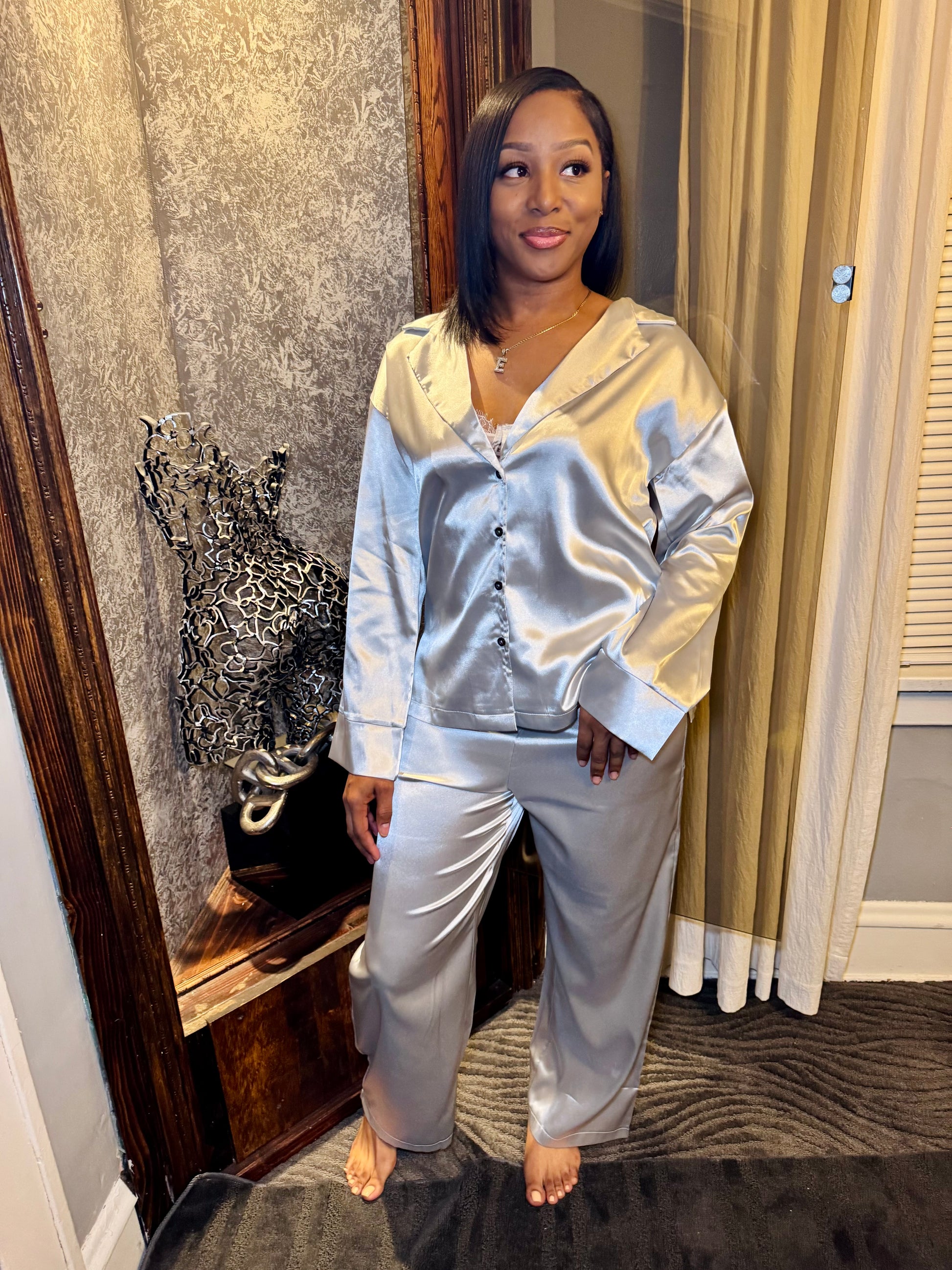 Experts recommend our Luxurious Pjs for their soft silk material and relaxed fit. Featuring a button-up v-neck top and ankle-cut pants, these pajamas are perfect for a comfortable night's sleep. Consider sizing up for added length. Our model, 5'4" and 147lbs, is wearing a size small.