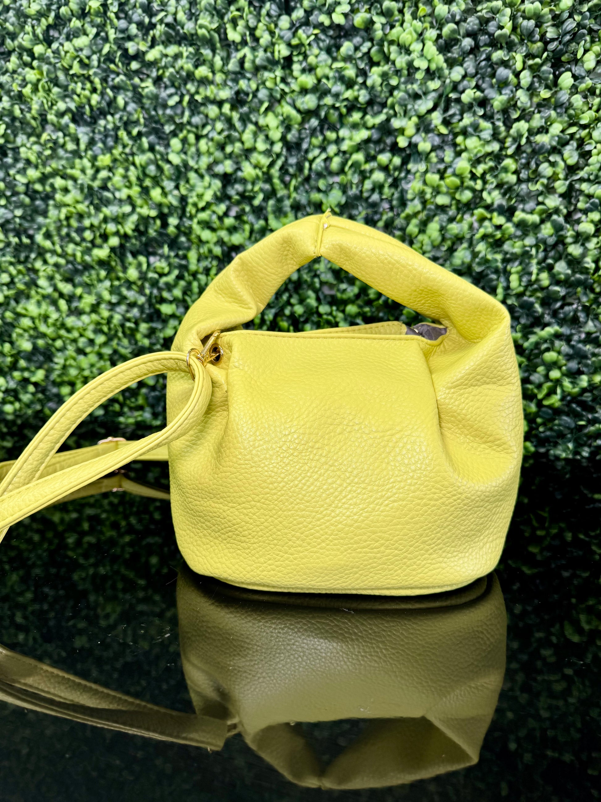 This versatile Mini Tote Bag features faux leather material and can be carried by its handle or hung on a shoulder strap for easy transport.