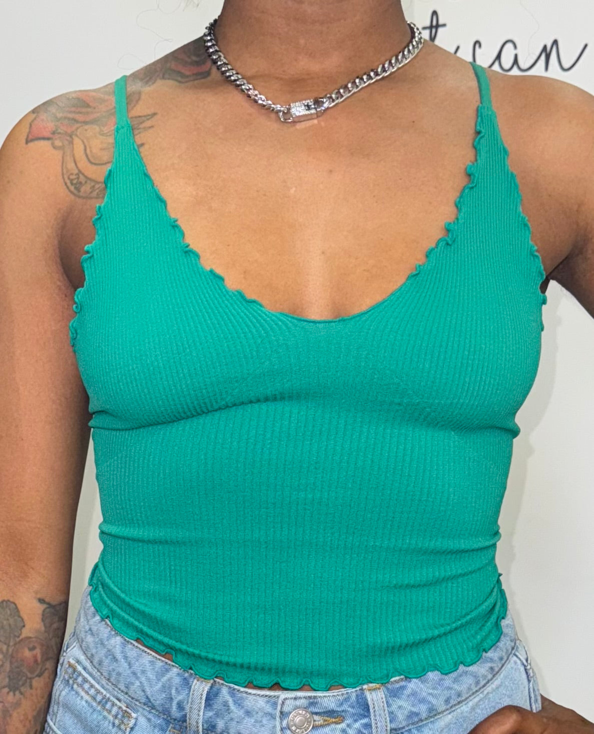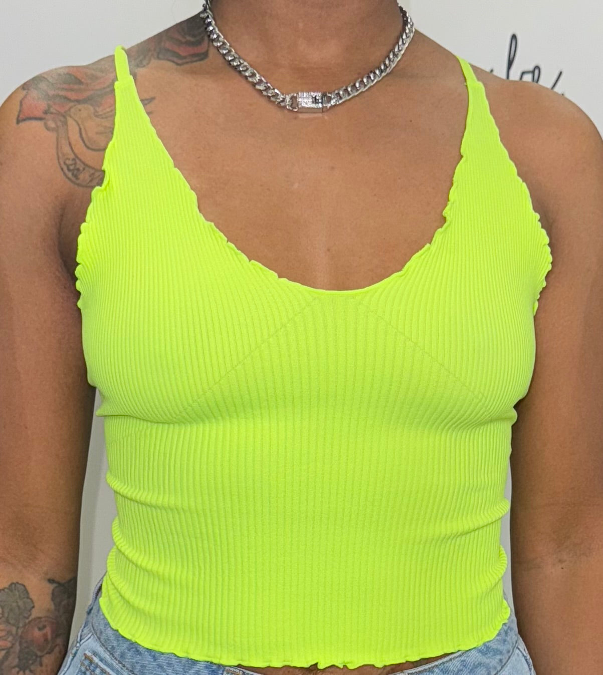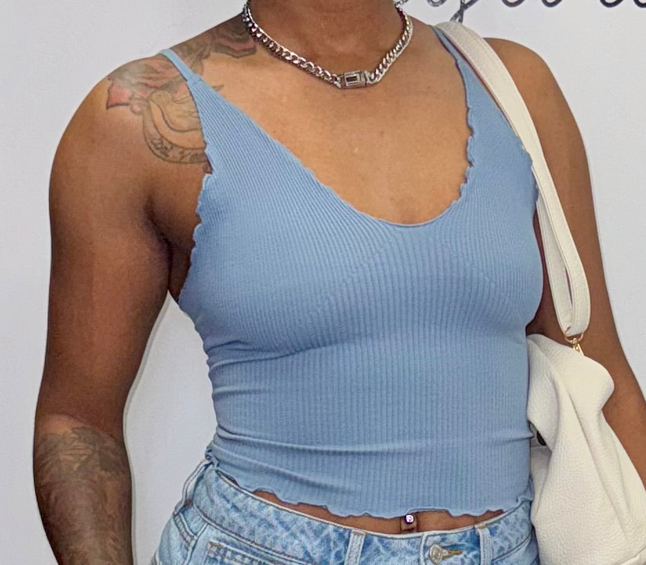 Slight cropped and stretchy camis with adjustable straps. Model is wearing a size S/M.